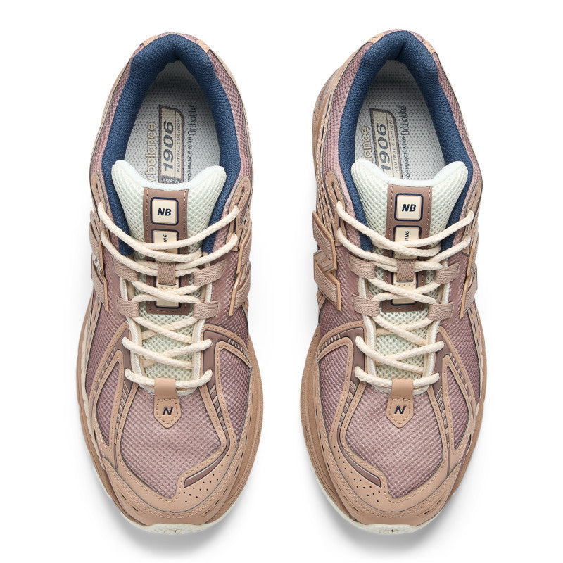 Al igual que sus compañeras, la 2002R y la 860v2, la 1906R presenta una unidad de suela con una combinación de amortiguación ACTEVA LITE flexible, absorción de impactos de N-ergy y almohadillas ABZORB SBS segmentadas en el talón. Este enfoque de vanguardia también se refleja en el empeine de la 1906R, que presenta una malla con orificios abiertos y una serie de superposiciones sintéticas curvilíneas. Este modelo, que se distingue de las convenciones de diseño de la época, ofrece una ejecución estilizada de la alta respuesta tradicional.