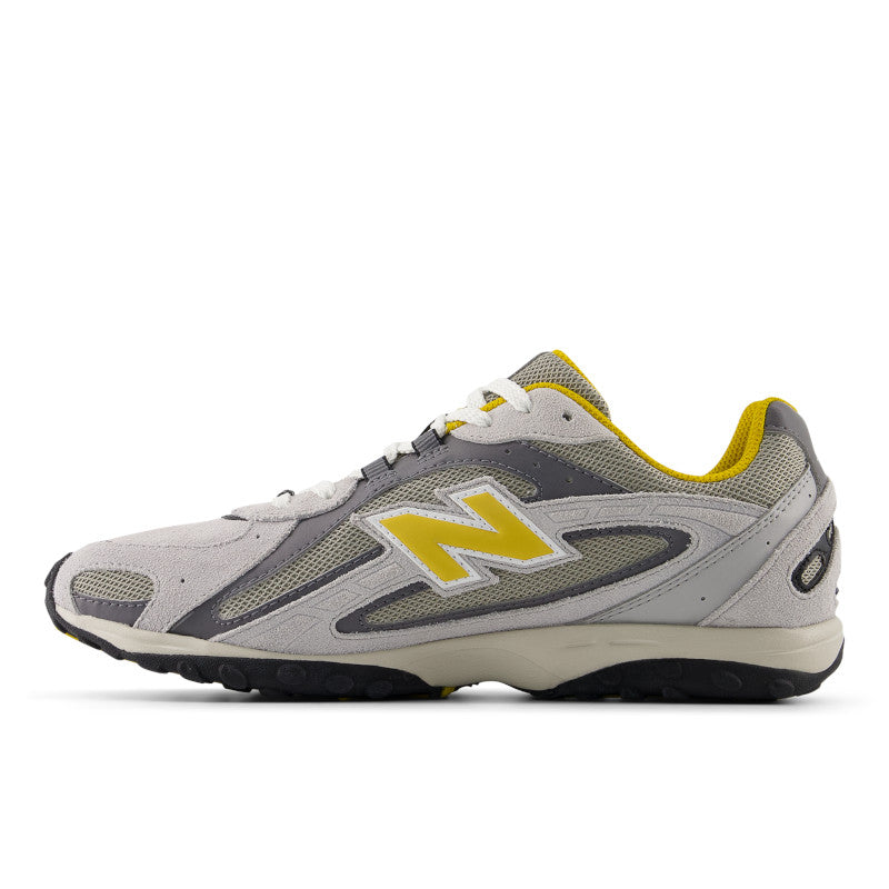 - Suela distintiva con trayectoria de pisada inspirada en los 2000 y dibujo de tracción con influencias de la década de 1970.